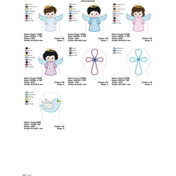 In diesem Set sind 7 verschiedene Stickdateien als Tealight Cover enthalten. Die genaue Motiv-Übersicht dieses Sets seht Ihr auf dem zweiten Bild.