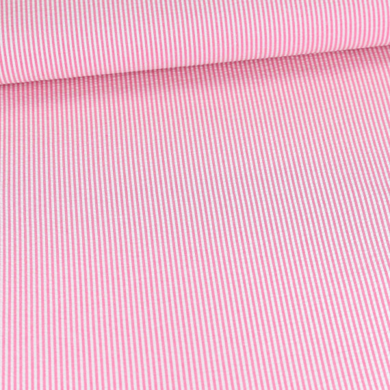 Seersucker - Streifen - Weiß/Magenta