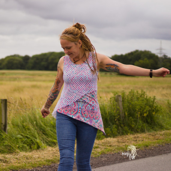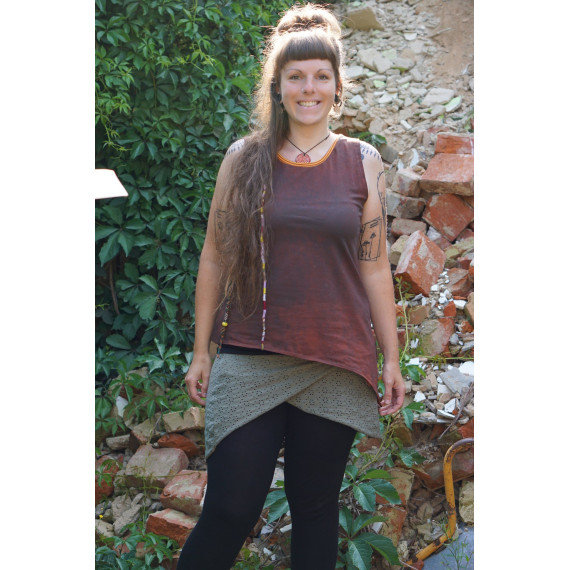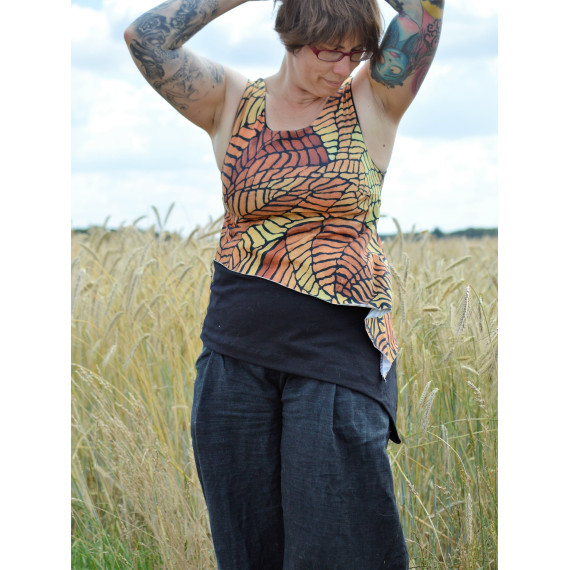 Das Zipfelchen ist ein asymmetrisches Top in doppelter Stofflage. Das obere Shirt „das kleine Zipfelchen“ ist brustabwärts weiter geschnitten und umspielt so ganz luftig das untere Shirt „das große Zipfelchen“, welches länger und figurbetonter ist.
