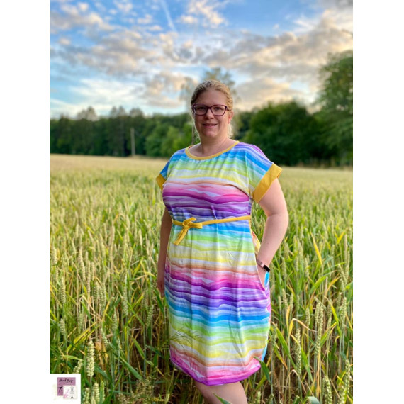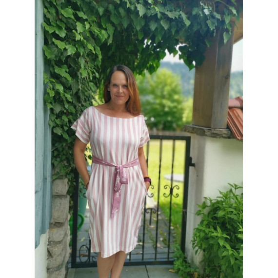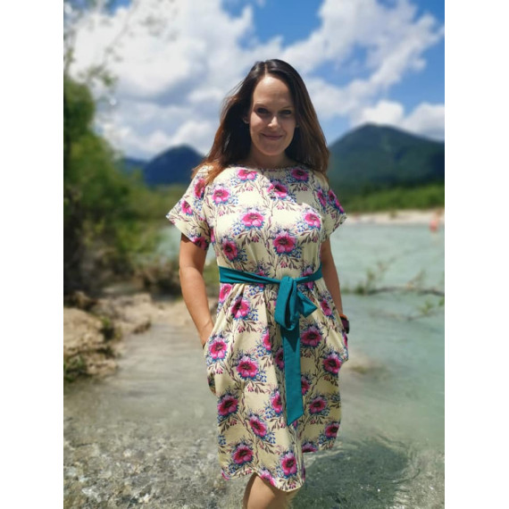 Clarice ist ein tolles Kleid mit Bindegürtel und Taschen.Es fällt locker und eignet sich hervoragend als Strand-oder Freizeitkleid.
