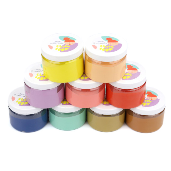 Sie ist wasserbasiert, vegan und kann neben dem Siebdrucken auch wunderbar als Textilfarbe mit Pinsel und Stempel genutzt werden… dafür einfach nur ein wenig nach Bedarf mit Wasser verdünnen.