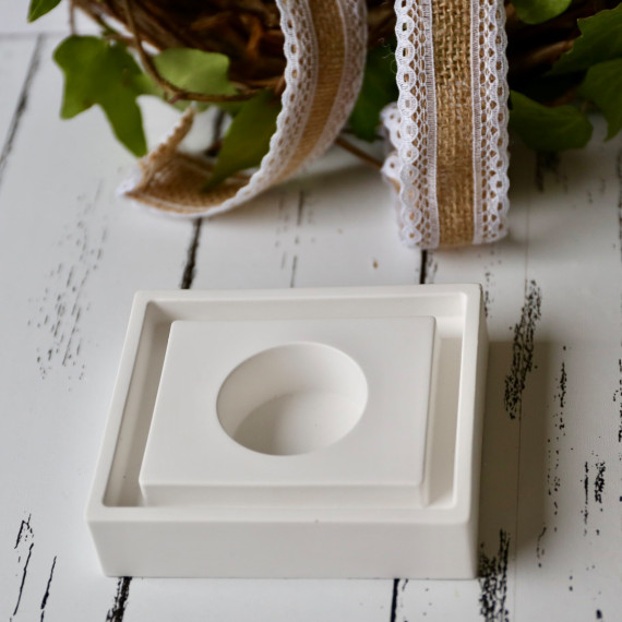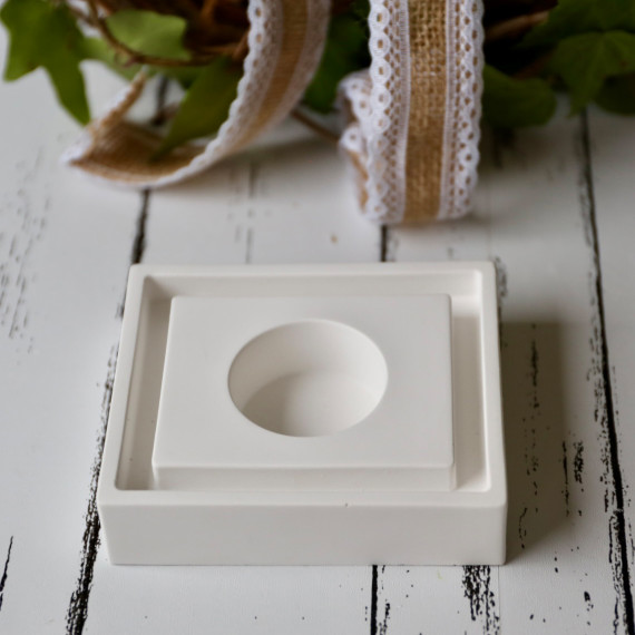 Die daraus gegossene Form misst ca. H/B/T: 9,0 x 10,5 x 2,5 cm; Rille ca. 0,8cm