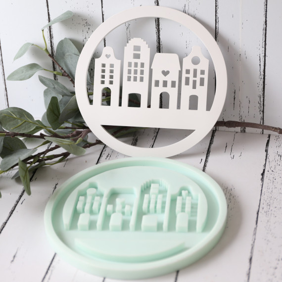 Silikon - Gießform - Dekoring - Häuserreihe - Altstadt - Groß - vielfältig nutzbar