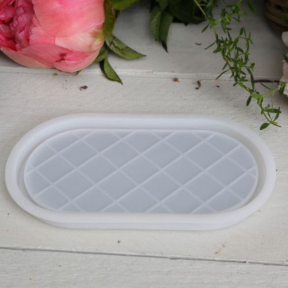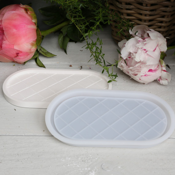 Silikon - Gießform - Dekoteller - Fliesenoptik - Gittermuster - Oval - vielfältig nutzbar