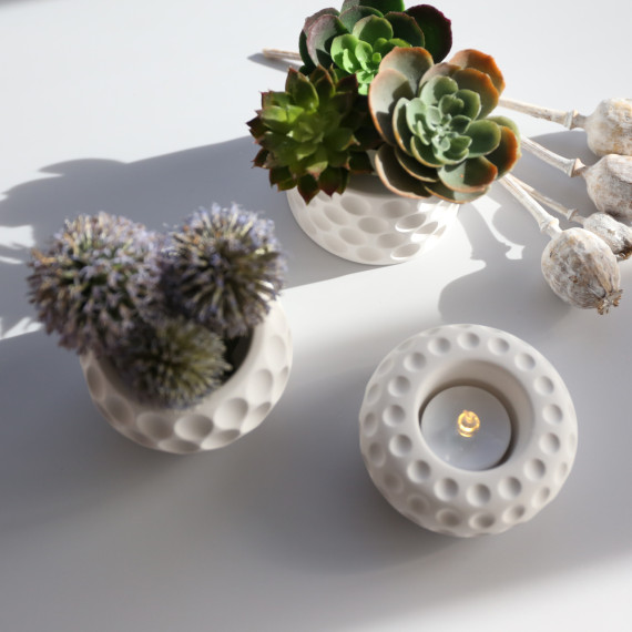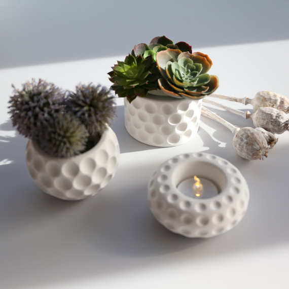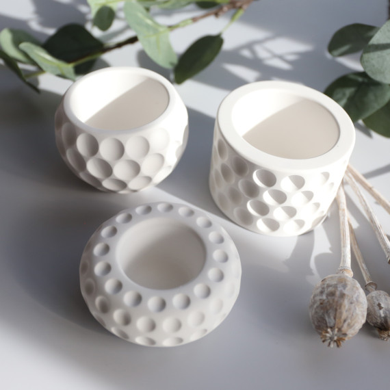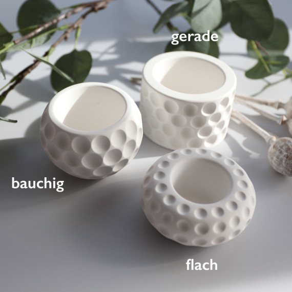 Den Kerzenhalter mit Bubble-Punkten gibt es in 3 Varianten - hier bestellst Du den runden & bauchigen.
