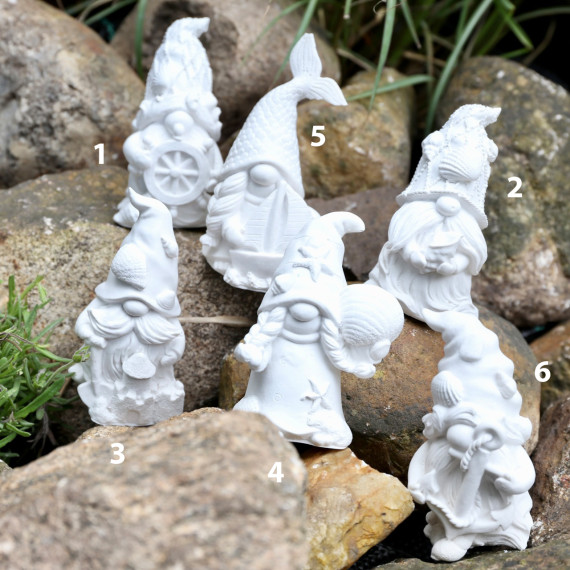 Die süßen Maritimen Gnome gibt es in 6 Varianten - hier bestellst Du den Gnom 3 mit Sandburg!