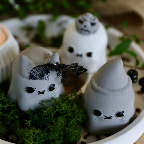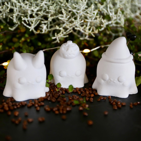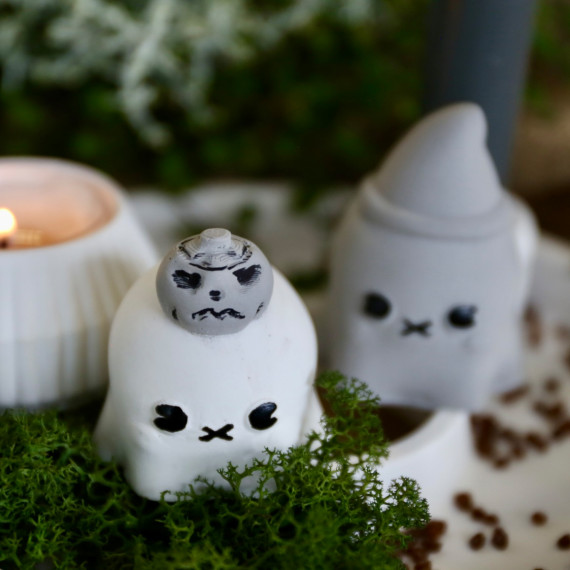 Von den zauberhaften Mini Gespenstern gibt es 3 Varianten - hier bestells Du das mit Kürbis auf dem Kopf :)