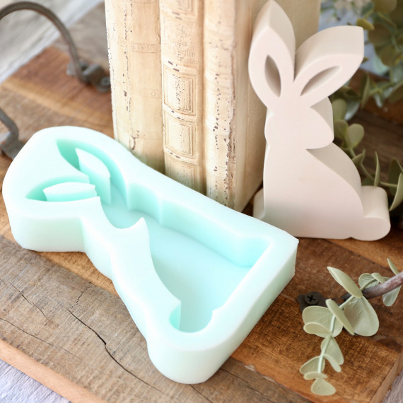 Silikon - Gießform - Eleganter Osterhase - Buchstütze - Dekohase - schaut nacht links - vielfältig nutzbar