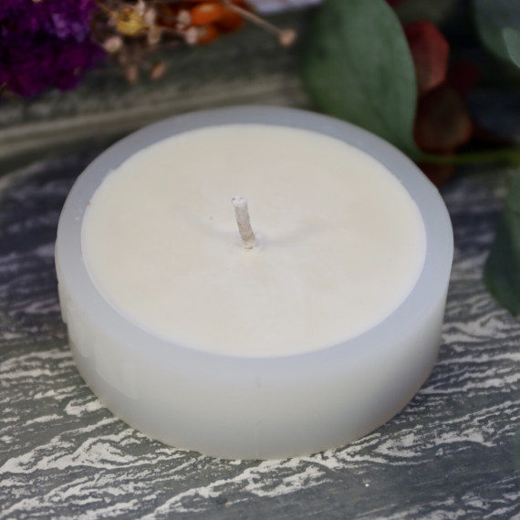 Die daraus gegossene Kerze misst ca. H/Ø: 2,0 x 7,5cm