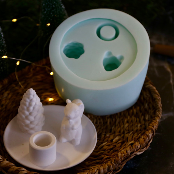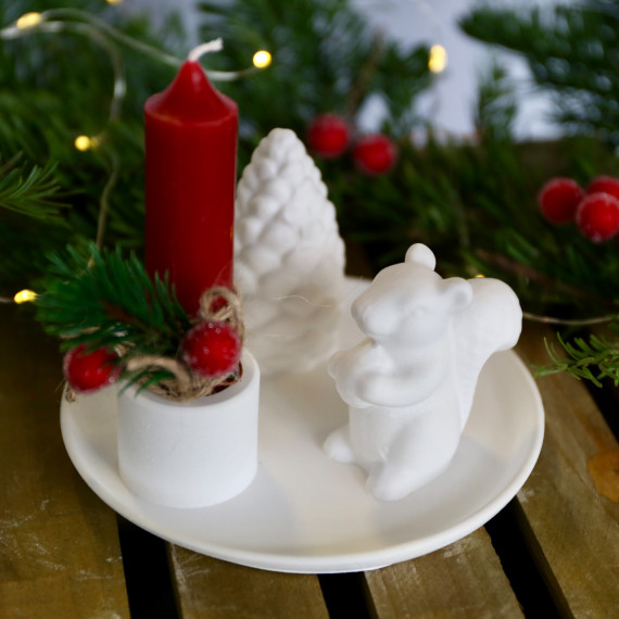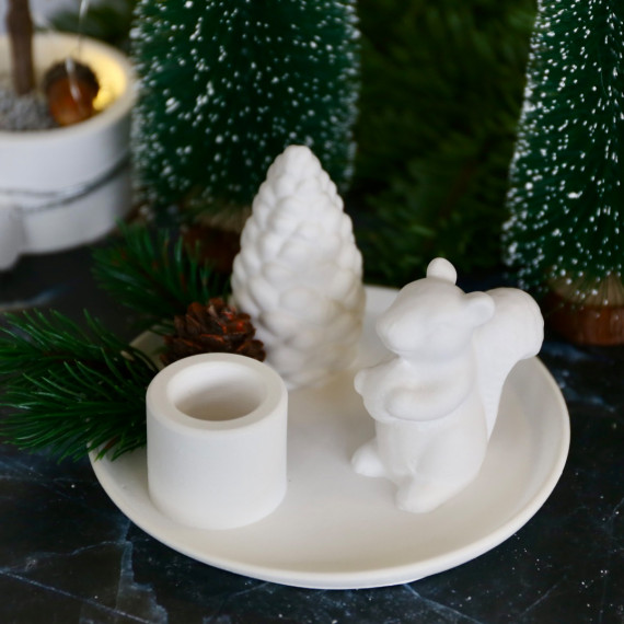 Silikon - Gießform - Kerzenteller - mit Eichhörnchen & Tannenzapfen - vielfältig nutzbar