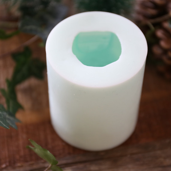 Die daraus gegossene Form misst ca. H/Ø: 7,3 x 5,5 cm