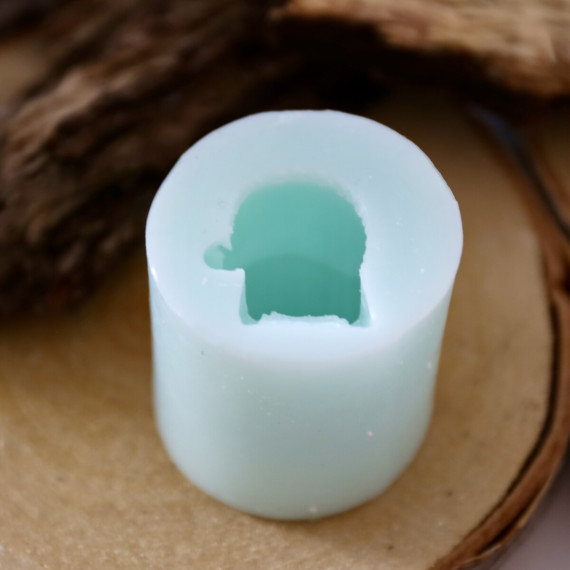 Die daraus gegossene Form misst ca. H/Ø: 4,5 x 3,5 cm