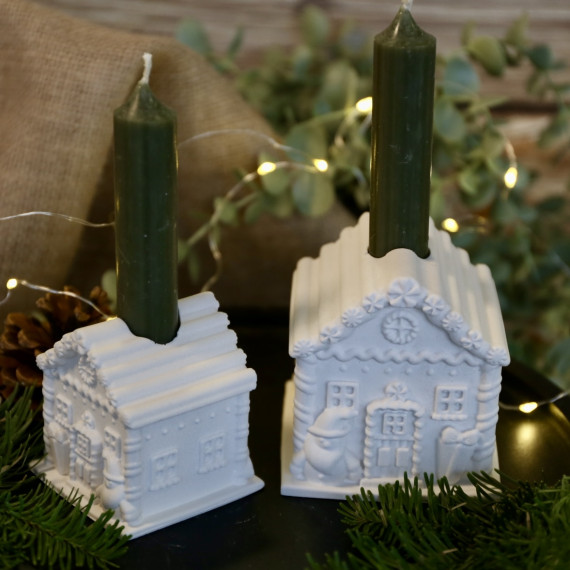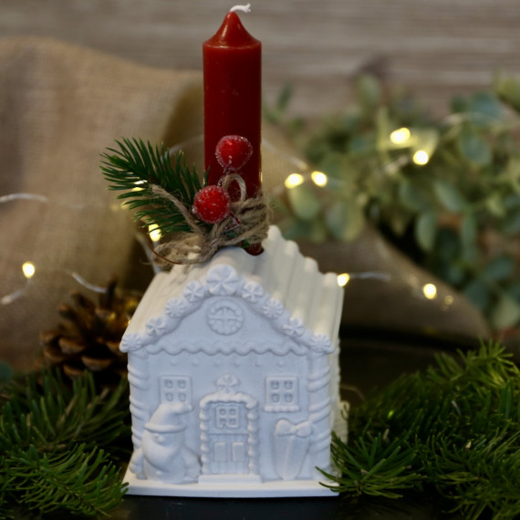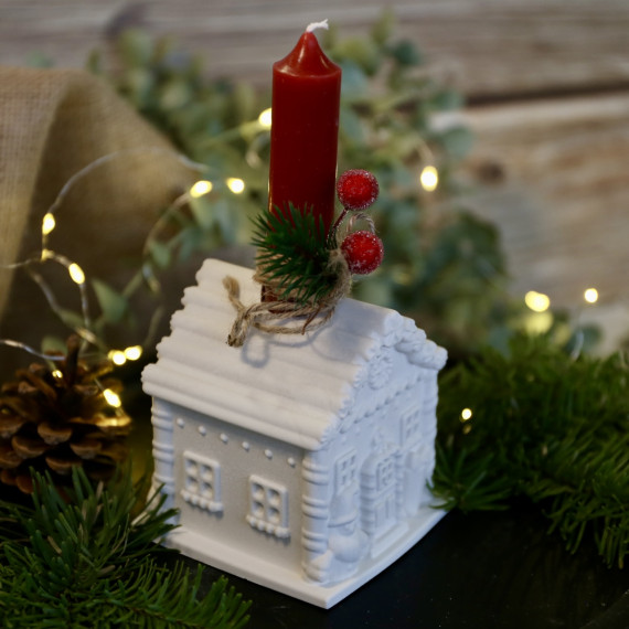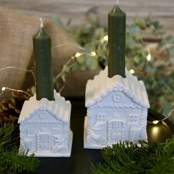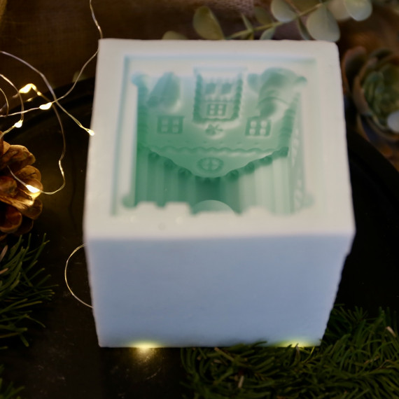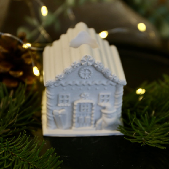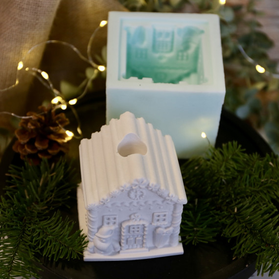Silikon - Gießform - Lebkuchenhaus - Kerzenhalter - für Stabkerzen - mit Streifen-Dach - Groß - vielfältig nutzbar