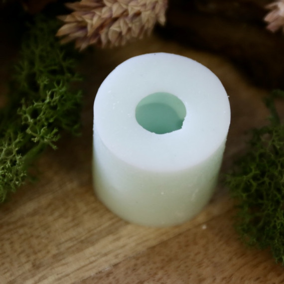Die daraus gegossene Form misst ca. H/Ø: 2,3 x 1,8 cm