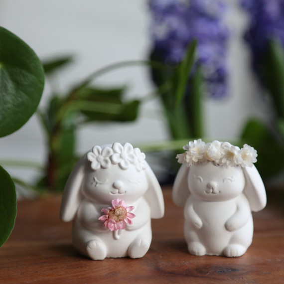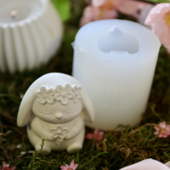 Silikon - Gießform - Mini - Hase mit Blume - Gartenfreunde - vielfältig nutzbar