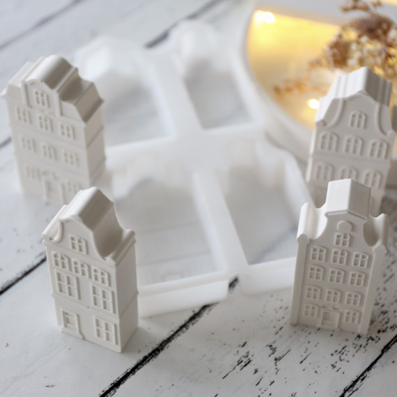Silikon - Gießform - Multiform - Grachtenhäuser - Haus - für 4 Stück - vielfältig nutzbar