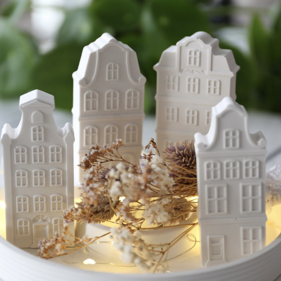 Mit dieser Form kannst Du 4 Grachtenhäuser gleichzeitig gießen :)