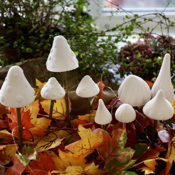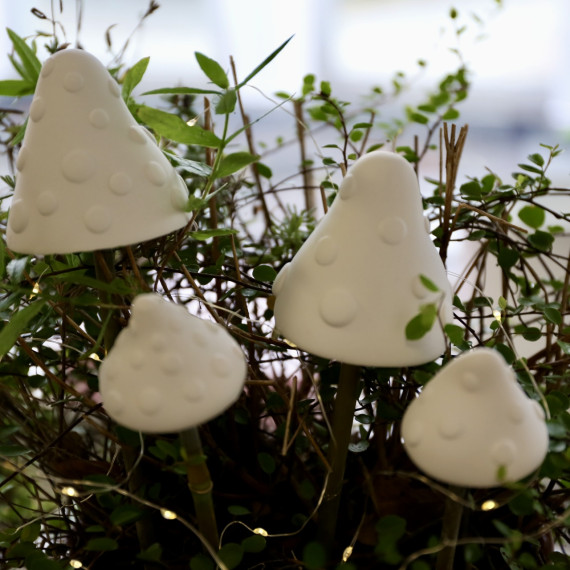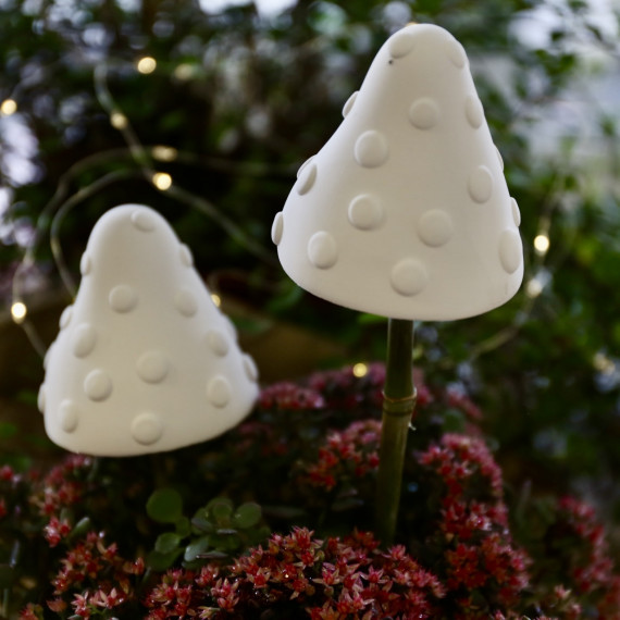 Du kannst die Pilzhüte toll auf Stöcker/Stäbe anbringen.