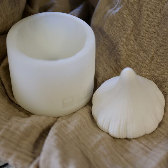 Die daraus gegossene Form misst ca. H/Ø: 5,0 x 6,0 cm