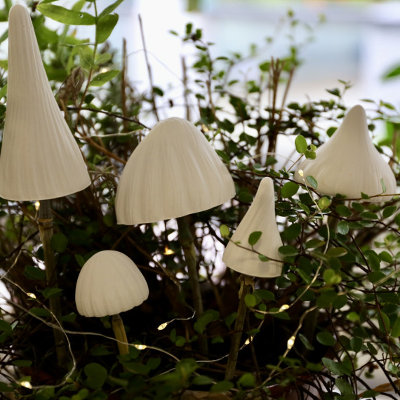 Du kannst die Pilzhüte toll auf Stöcker/Stäbe anbringen.