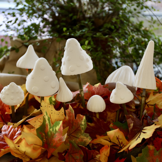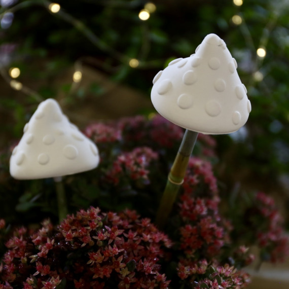 Du kannst die Pilzhüte toll auf Stöcker/Stäbe anbringen.