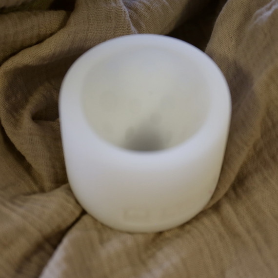 Die daraus gegossene Form misst ca. H/Ø: 4,0 x 5,0 cm
