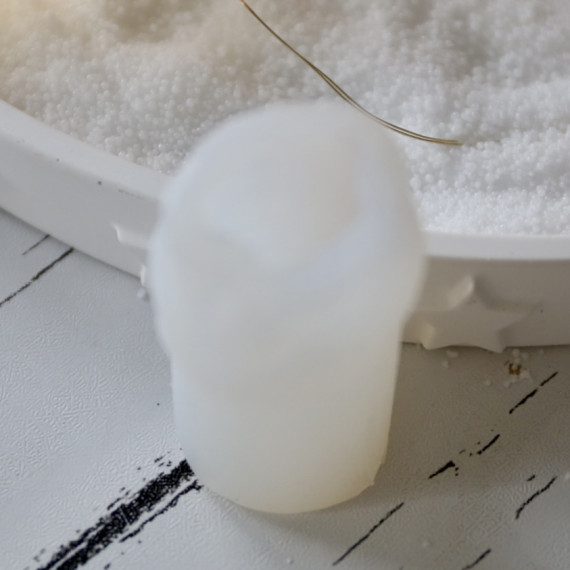 Die daraus gegossene Form misst ca. Ø/L: 2,0 x 4,0 cm