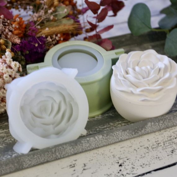 Silikon - Gießform - Zarte Rosenblüte - Kerzenglas - Kerzengefäß - mit Deckel - 3,5oz - mit Manschette - offizieller Partner von Boowan Nicole - vielfältig nutzbar