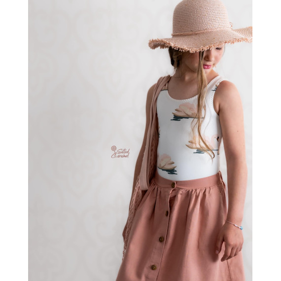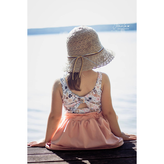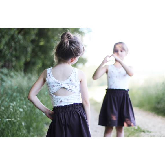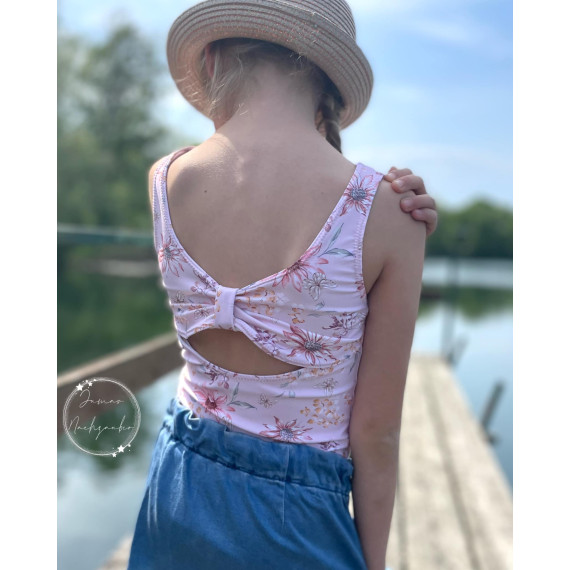 Mit seiner Vielseitigkeit ermöglicht das Schnittmuster "Snazzy Suit" nicht nur verschiedene Tragevarianten, sondern auch die Option, den Badeanzug zu wenden und beidseitig zu nutzen. Das bedeutet, dass Ihre kleine Schwimmerin zwei unterschiedliche Looks mit nur einem Kleidungsstück tragen kann.