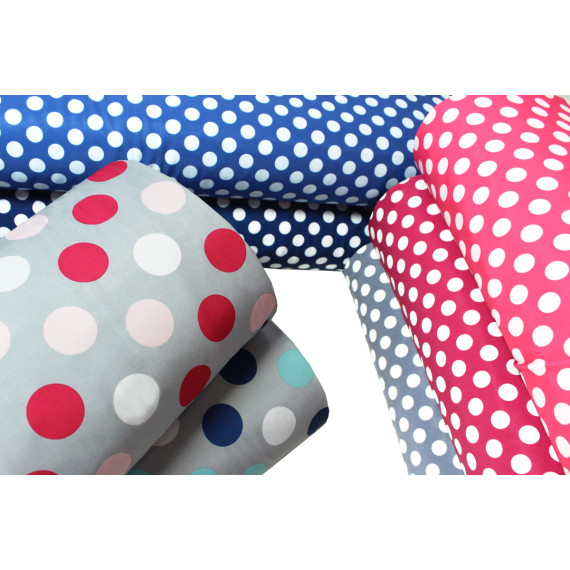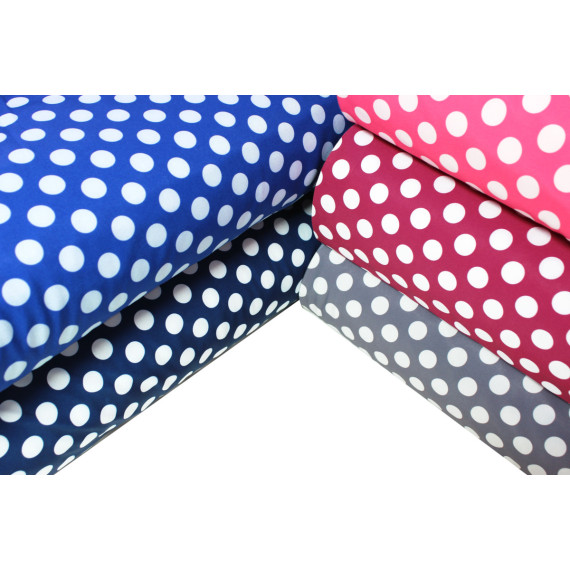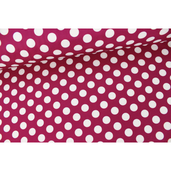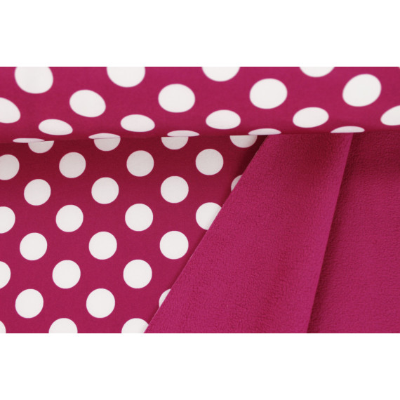 Toller Softshell-Stoff mit kuschelweicher Fleece-Innenseite in Beere und vielen großen weißen Punkten auf einer beerigen Außenseite:)