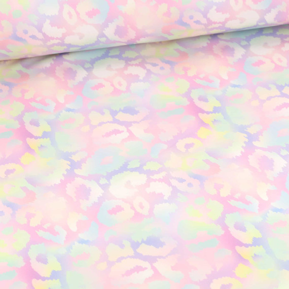 Hier mit modernem Leopardenmuster in Pastell Regenbogenfarben.