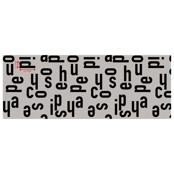 Der Buchstabe p misst z.B. ca.5,5cm x 14,0cm.