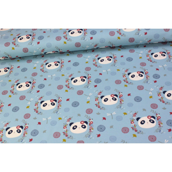 Toller Sommersweat mit süßen Pandas, Libellen und bunten Blumen auf einem hellblauen Hintergrund :)