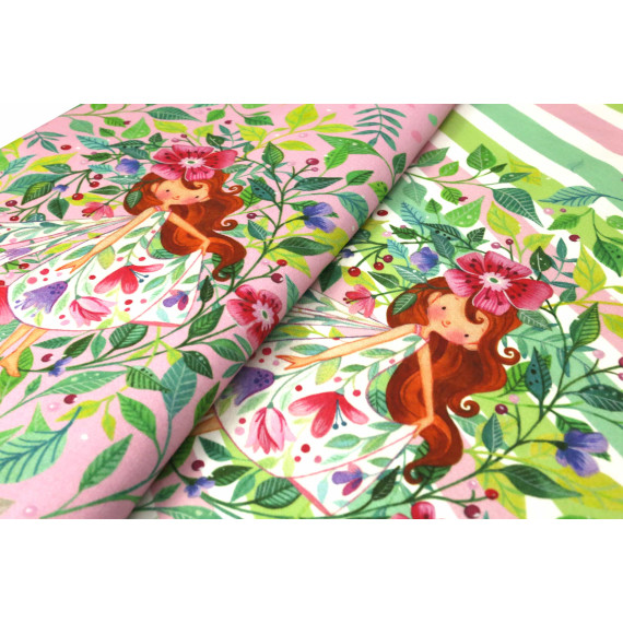 Der Stoff wird im Rapport von 60cm verkauft. Das Stück Stoff, welches Du erhälst, ist also etwa 60cm x 150cm groß und beinhaltet insgesamt 1 süße Blütenelfe.