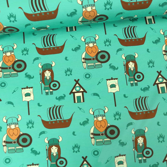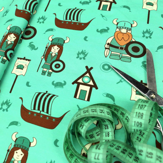 Wundervoller Sommersweat mit superstarken Wikingern auf einem mintfarbenen Hintergrund nach einem Design von Abenteuermädchen! :)