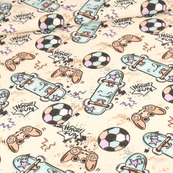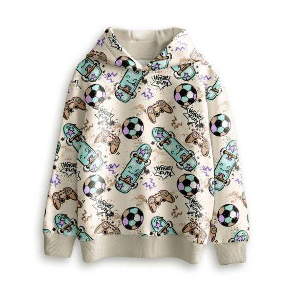 Wunderschöner Sommersweat mit coolen Skateboards, Fußbällen, Gaming Controllern - vielen Spaßartikeln für Kinder! :)