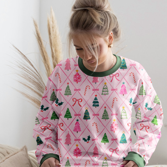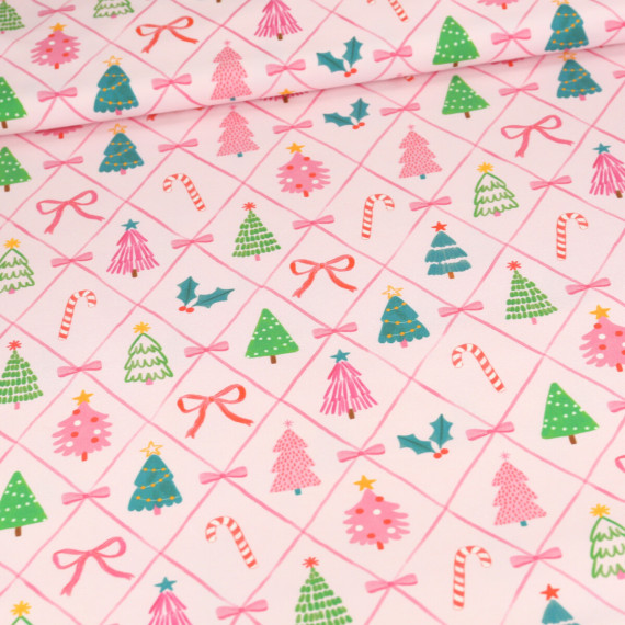 Sommersweat - Weihnachtsbäume & Schleifen - Rosa - Bio Qualität - abby and me