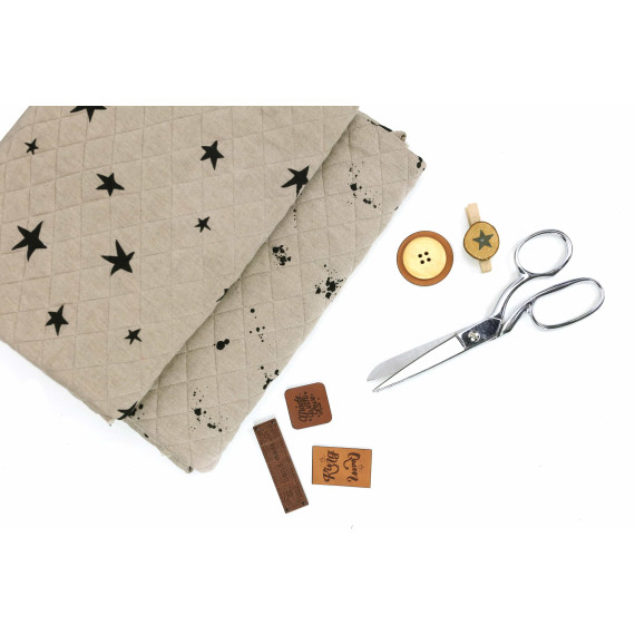 Steppstoff - Kleckse - Rauten - Elastisch - Wattiert - Beige