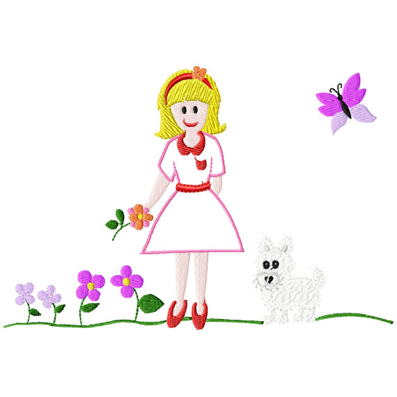 Stickdatei mit Applikation #Mädchen mit Hund für Stickmaschinen.