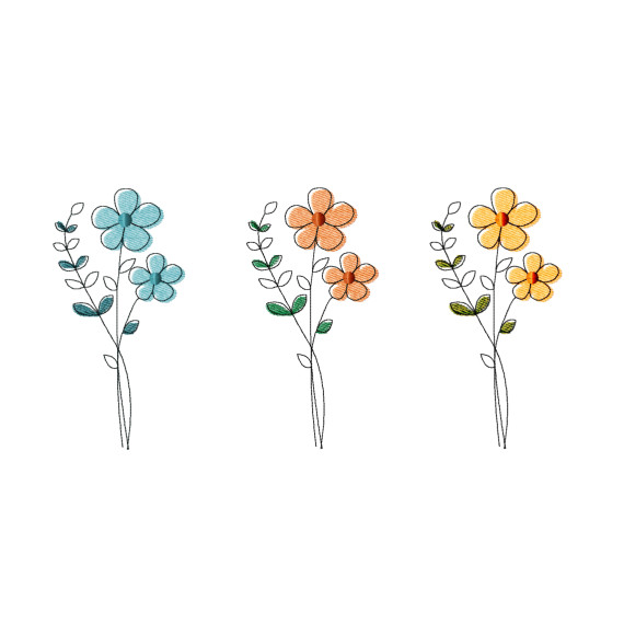 Stickdatei Blumen in drei Größen, Redwork, Frühling, Sommer, Geburtstag