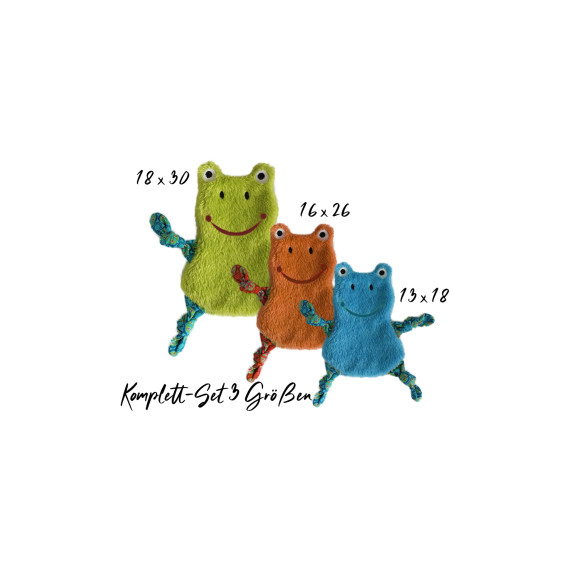 Stickdatei Frosch Kuscheltuch in drei Größen als Komplett-Set