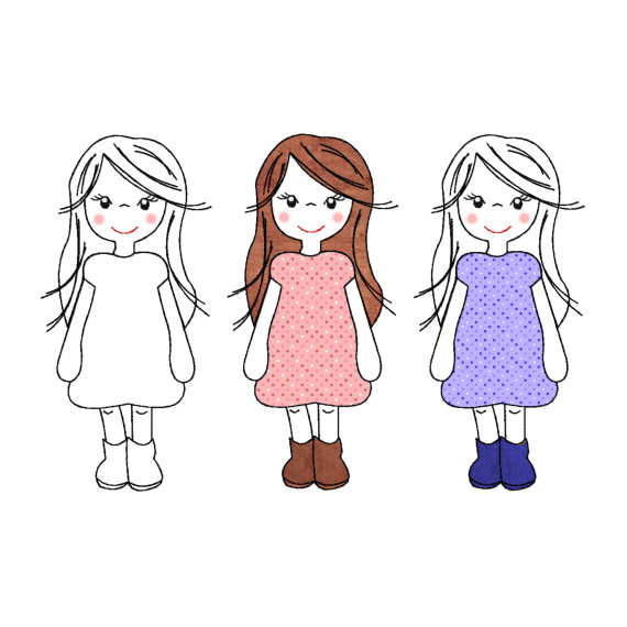 Das niedliche Girl kann in drei verschiedenen Ausführungen gestickt werden....