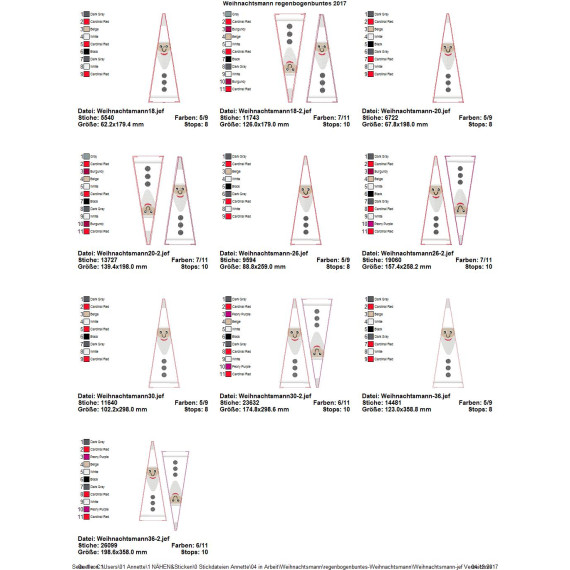Darin enthalten sind 5 Größen jeweils einfach und doppelte Weihnachtsmänner.