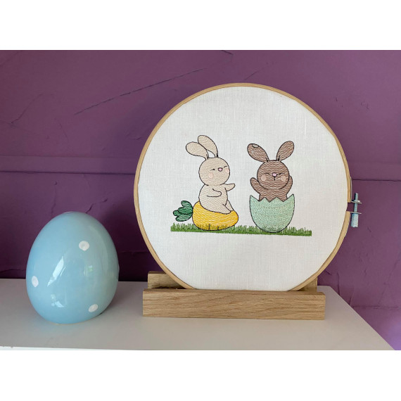 Die Hasen, Schriftzüge und die Wiese sind noch als Einzelmotive enthalten, sodass du sie auch bequem auch auf etwas anderes aufsticken kannst.