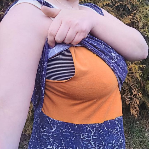 Das Still-Top Traube ist für das diskrete Stillen in der Öffentlichkeit konzipiert und kann entweder im Sommer als Top getragen werden oder unter anderen stillfreundlichen Oberteilen, wie unser Still-Troyer Guave. Das Vorderteil besteht aus zwei Lagen, wobei die untere Lage das Stilloberteil ist. Das Still-Top ist ärmellos.