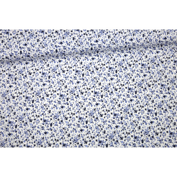 Hier ein toller Baumwollstoff mit süßen Blümchen und Schleifen in Blau und Dunkelblau auf einem weißen Hintergrund! :)