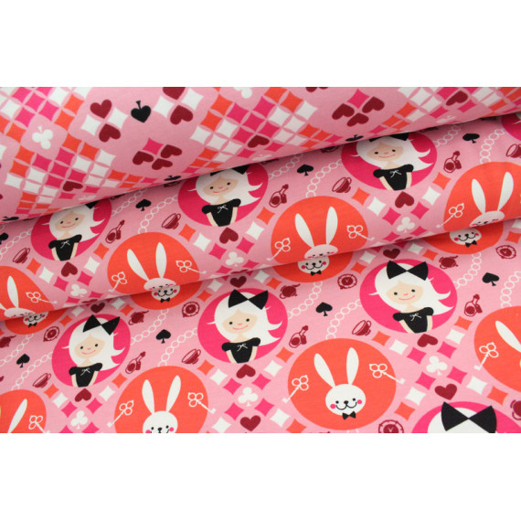 Unsere süße MissWonderland und ihr kleiner Hase auf gemütlichem rosa Jersey.Das kleine Mädchen aus dem Wunderland hat eine Größe von etwa 10cm.