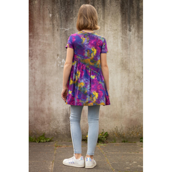 Es bietet verschiedene Varianten und ist zahlreich kombinierbar. Als Tunika zur coolen Jeggings, als Kleid zur Leggings oder im Sommer als kurzärmeliges Kleid.