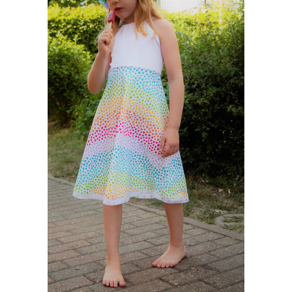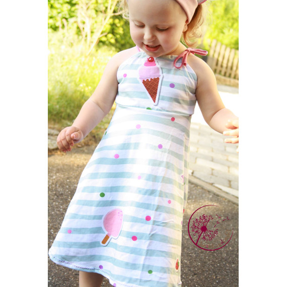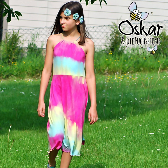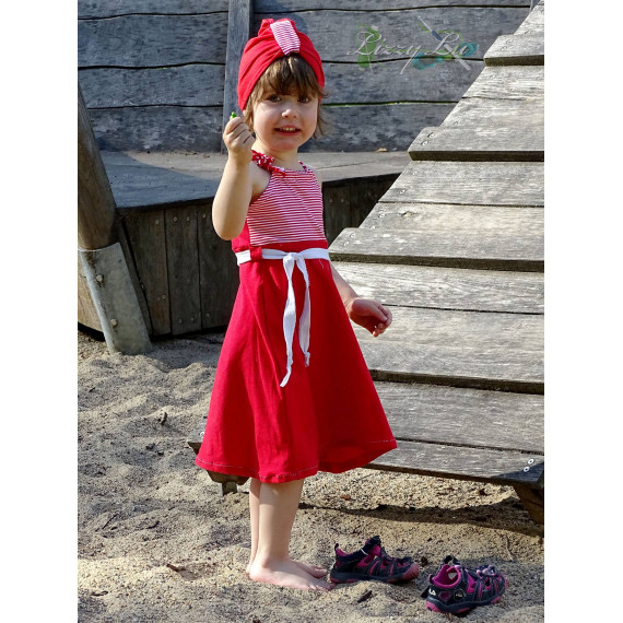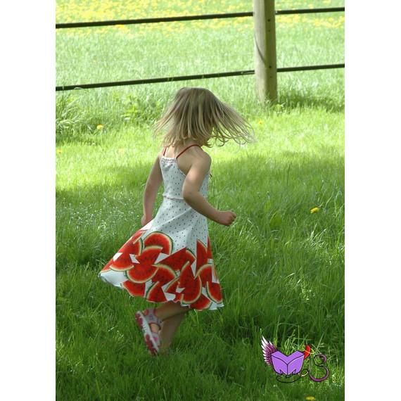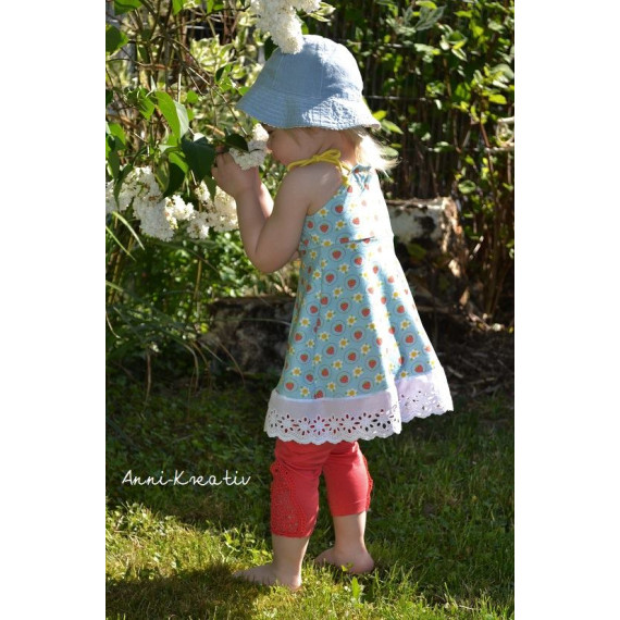Summerspeedy ist ein tolles luftiges Sommerkleidchen für die kleinen Damen. Da Speedy aus Jersey genäht wird, bietet es trotz der körpernahen Form ausreichend Bewegungsfreiheit und engt nicht ein. Wie der Name schon sagt, ist Speedy ein wirklich fix genähtes Teilchen. Und der Clou an der ganzen Sache → es gibt weder vorn noch hinten, so dass sich auch die kleinen Damen problemlos alleine anziehen können ;-)