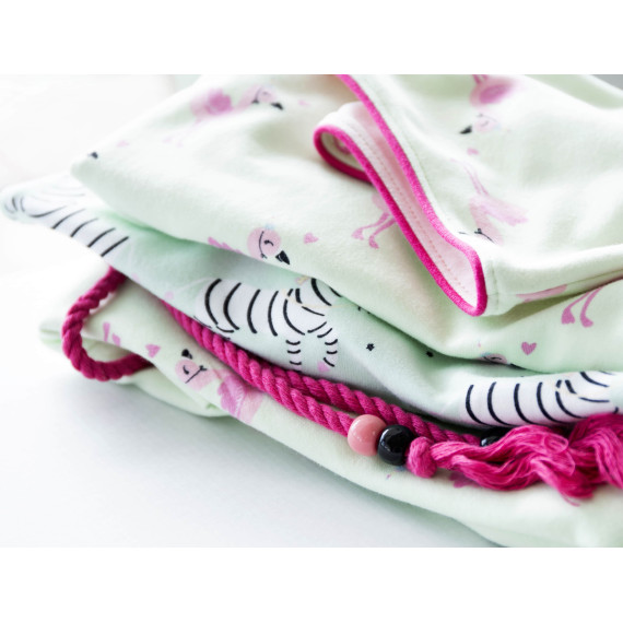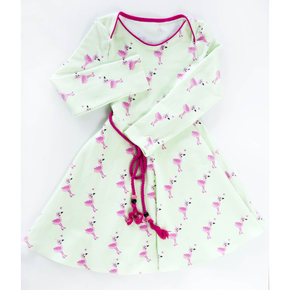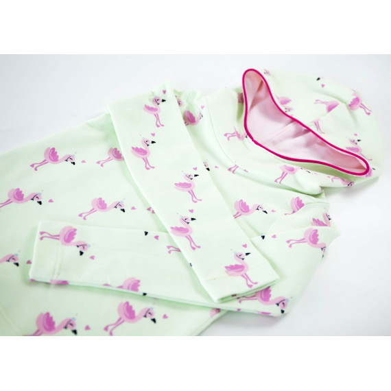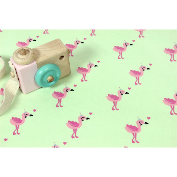 Einfach Süß!! :) Toller Sweat in Bio-Qualität mit vielen zauberhaften Flamingos und Herzchen vor einem blassgrünen Hintergrund nach dem...